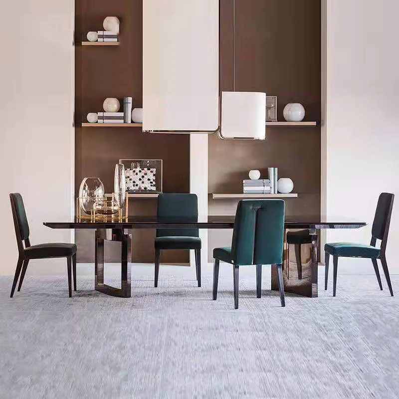 景泰蓝のラグジュアリー石製ロングダイニングテーブル - ヴィラや豪邸にぴったりの全屋コーディネート、洗練されたレストランシリーズ、軽やかな高級感溢れるテーブルとチェアのセット!