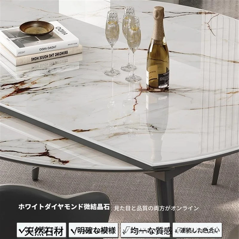 高級大理石ダイニングテーブル - モダンで洗練されたデザイン、天然ミクロクリスタルストーン使用の長方形テーブル。家族や友人との特別なひとときを彩ります。豪華さと機能性を兼ね備えた一品。