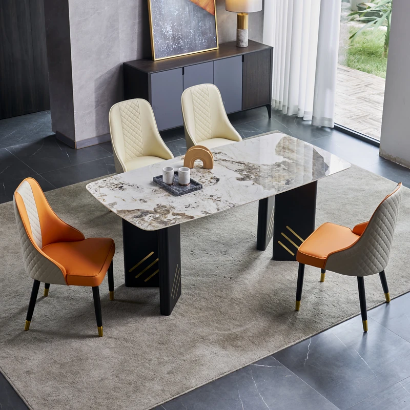 イタリア輸入のラグジュアリーな石材シリーズ、モダンデザインのシンプルな大理石ダイニングテーブルセット。洗練されたスタイルで、あなたの食卓を特別に演出します!