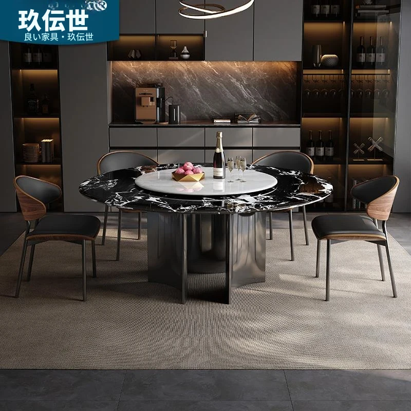 佛山ウッディーウッド(黒檀)ダイニングテーブルセット モダンシンプル 大型大理石ラウンドテーブル 高級感あふれる食卓で、家族や友人との素敵な時間をお楽しみください!